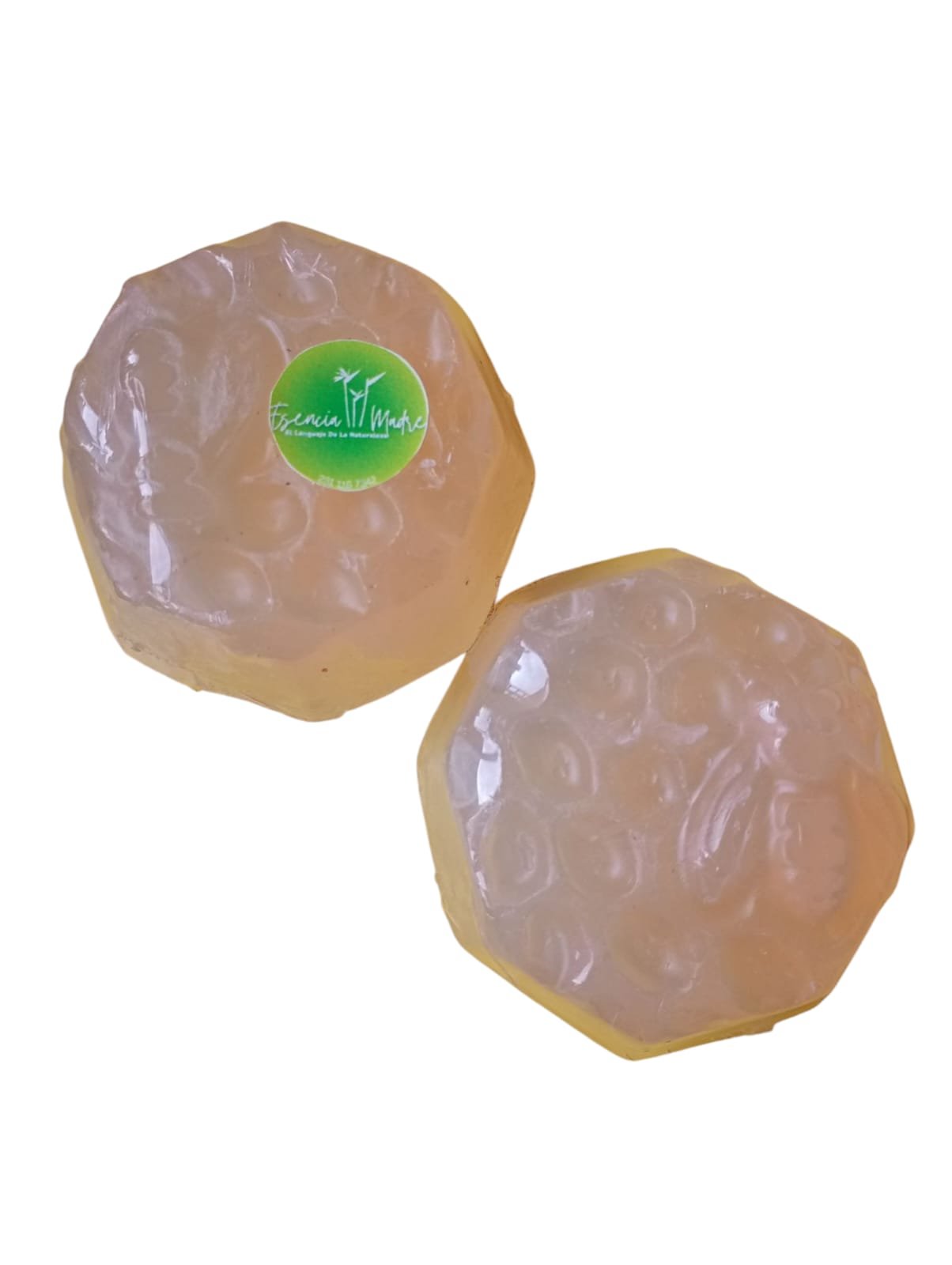 Enriquecido con la miel de abeja, un tesoro natural lleno de propiedades regeneradoras y humectantes, este jabón deja tu piel suave, nutrida y luminosa, manteniendo su equilibrio natural.